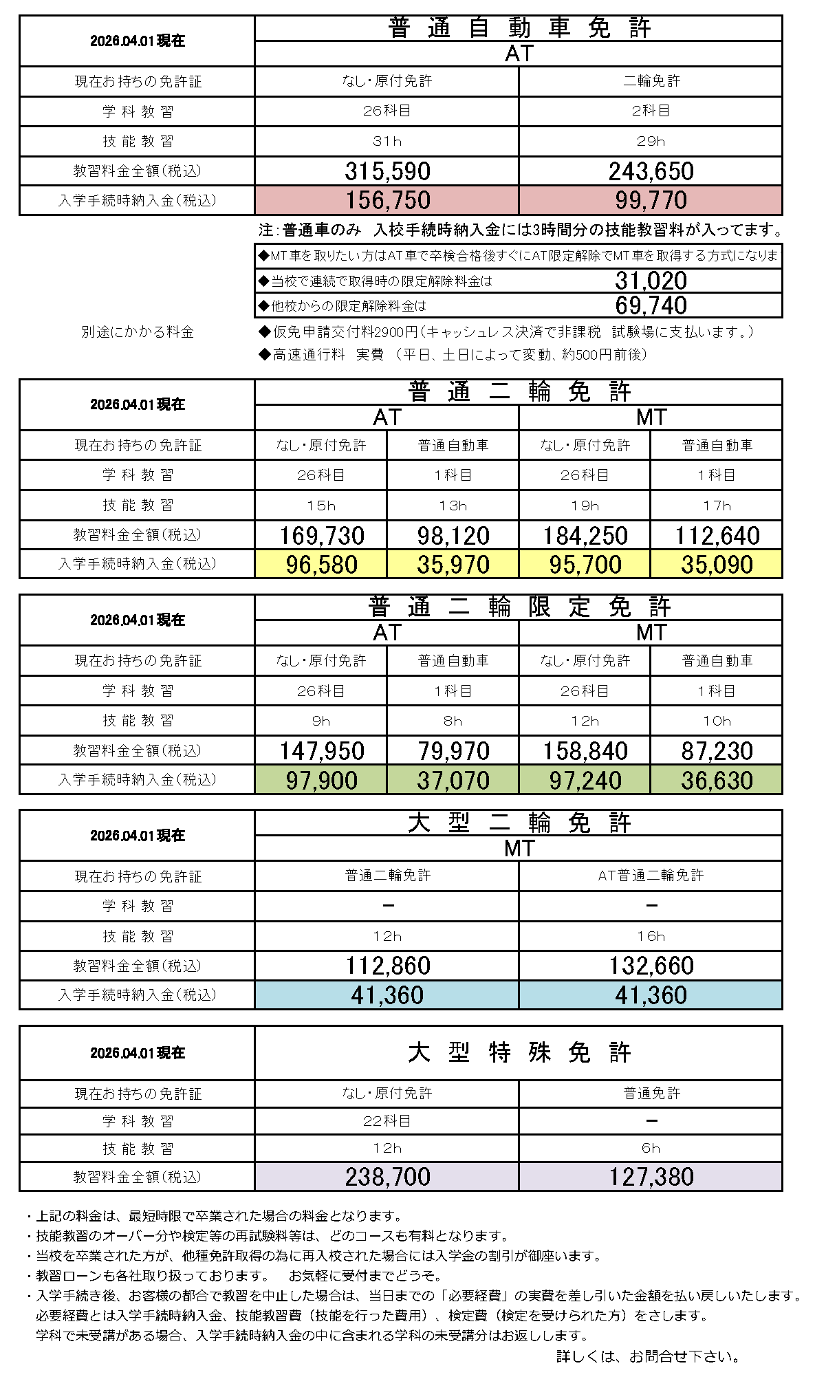 身体に障害のある方、免許の取り消し、無免許運転等の処分前歴のある方は、入校の手続きの前に係の者にご相談下さい。